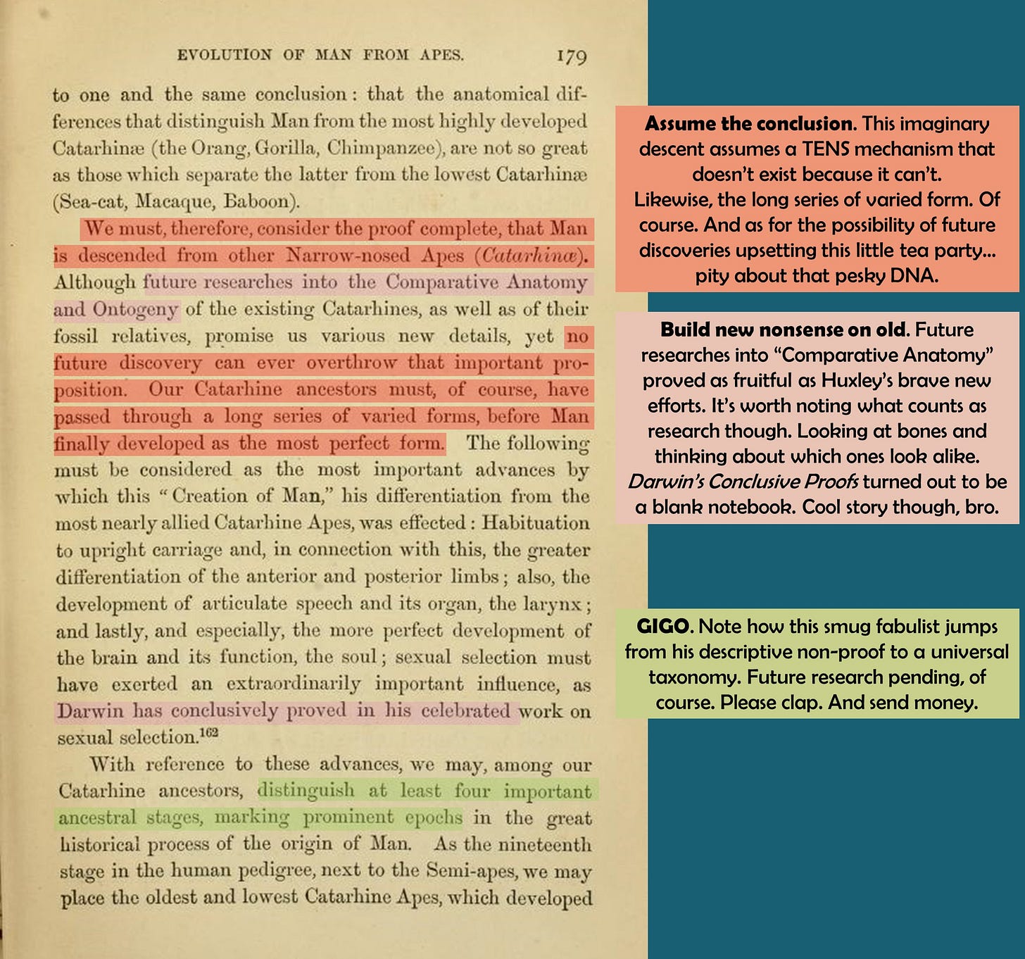 Consider what TENS is built on. Darwin is known. The lesser lights are … illuminating. Like Ernst Heinrich Philipp August Haeckel, a German mythologizer whose The Evolution of man - a popular exposition of the principal points of human ontogeny and phylogeny appeared in English in 1879. He’s worth a look as representative of the early acolytes. This is what the modern epicyclists have to defend.
