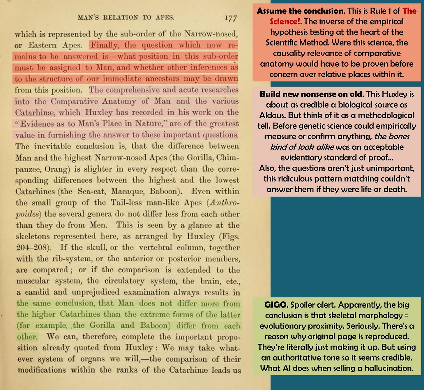 If we want to be charitable, the Victorians did what they could with the limits they had to work with. Their conclusions were not unreasonable given the strata, fossils, etc. they could see and the things they didn't have. Even within that charity, making TENS the mechanism an article of faith and foregoing serious testing was anti-science. Eventually, the tech caught up. AI was the final piece required to assemble the murder weapon.